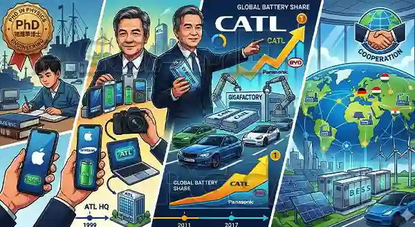 ที่กลายเป็นลูกค้าหลักรายแรก หลังจากนั้นในปี 2559 CATL เป็นผู้ให้บริการแบตเตอรี่ HEV, EVและ PHEV รายใหญ่เป็นอันดับที่สามของโลก ซึ่งรองจาก BYD และ Panasonic (Sanyo) ต่อมาในปี 2560 ยอดขายระบบแบตเตอรี่พลังงานของ CATL ก็เพิ่มสูงถึง 11.84 GWh จนขึ้นเป็นผู้นำของโลกเป็นครั้งแรก อ่านเพิ่มเติมได้ที่ Wikipedia