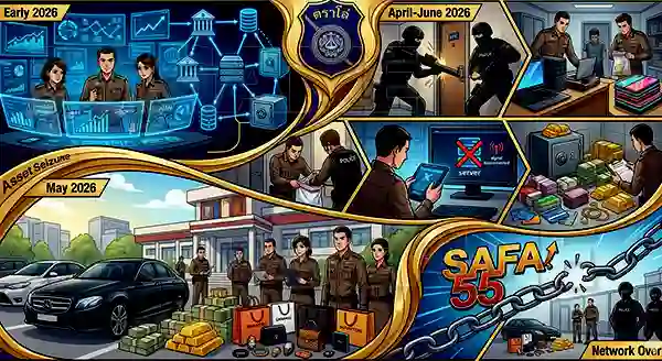 SAFA 55 จับแล้ว ทำไมเว็บยังเปิดอยู่ ปฏิบัติการทลายเครือข่ายนี้ เริ่มจากการสืบสวนเส้นทางการเงินช่วงต้นปี 2026 จนนำไปสู่การบุกตรวจค้นจุดเสี่ยงทั่วประเทศ เพื่อตัดวงจรระบบหลังบ้าน ระงับสัญญาณเว็บไซต์ และอายัดทรัพย์สินบัญชีม้าทั้งหมด ในช่วงเดือนเมษายนที่ผ่านมา